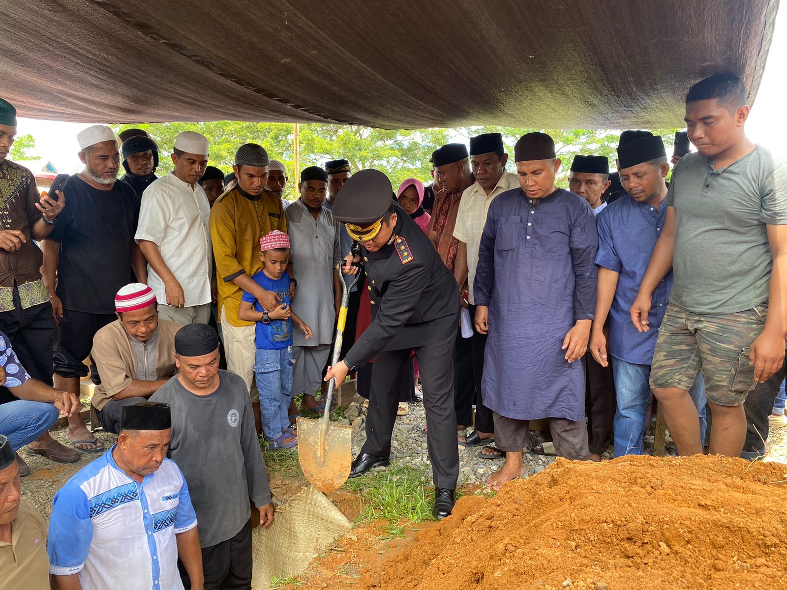 Humas Polres Sula- Kepala Kepolisian Resor Sula AKBP Kodrat Muh Hartanto, S.I.K, memimpin upacara pemakaman Personil Ditpolairud Polda Maluku Aipda Oman Umanahu di rumah almarhum di Desa Falahu, Sabtu (26/7/25).