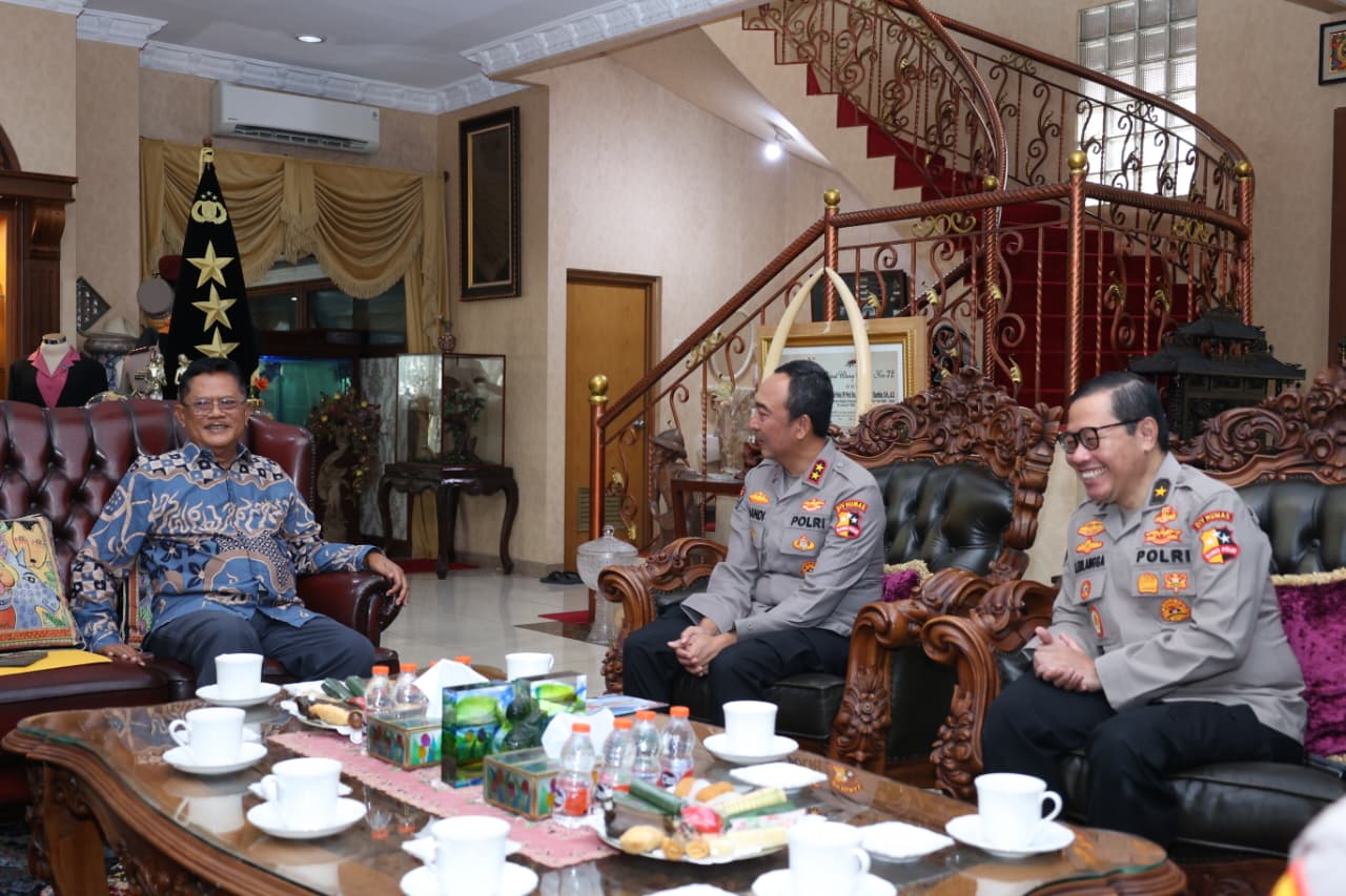 Jakarta. Kepala Divisi Humas Polri Irjen Pol. Sandi Nugroho melaksanakan silaturahmi dan anjangsana ke kediaman Kadivhumas Polri periode 1998 Jenderal Polisi (Purn) Tan Sri Da’i Bachtiar, P.S.M., A.O. Kegiatan ini didampingi oleh para PJU Humas Polri.