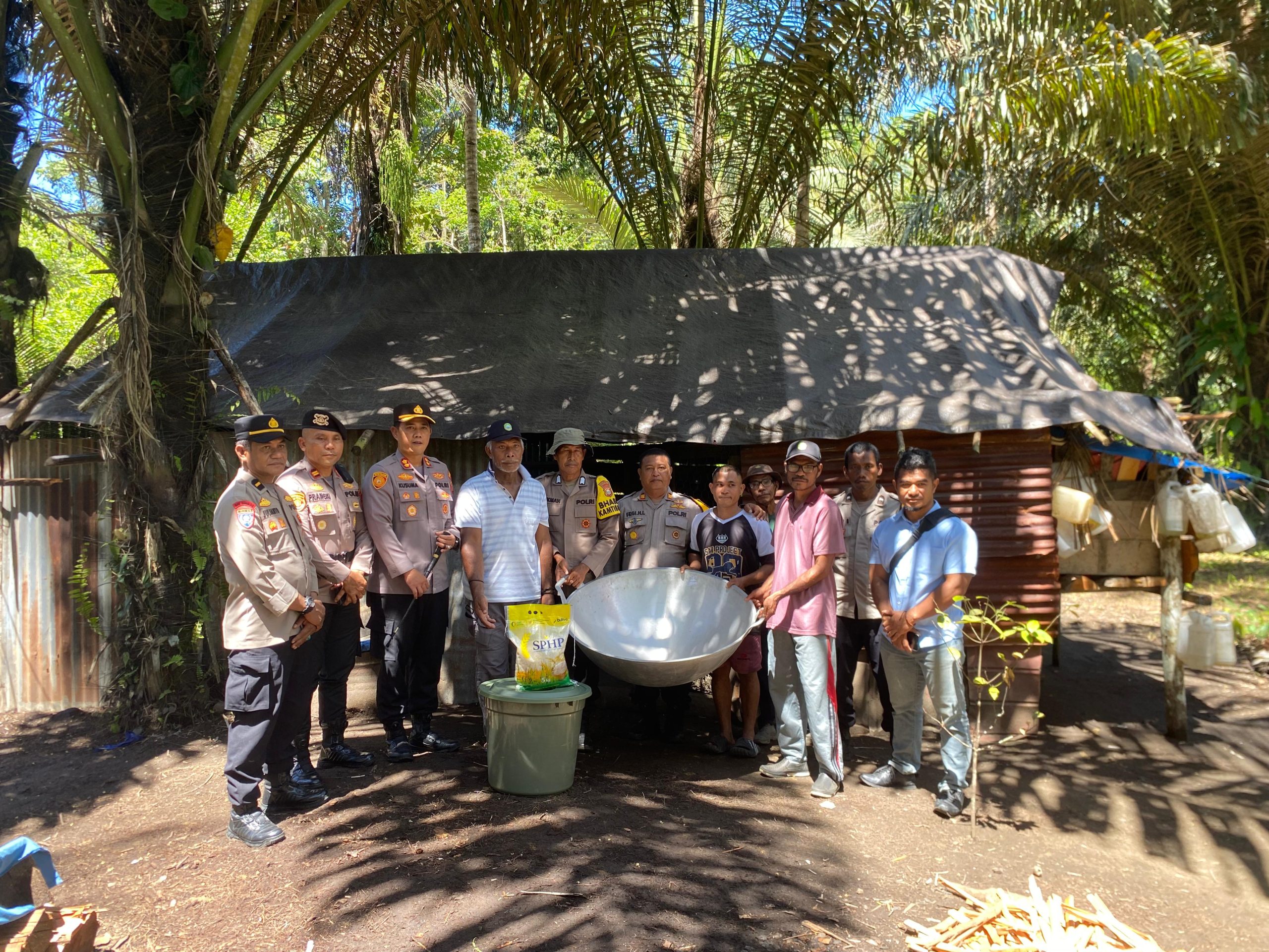 .Polri melalui Jajaran Polres Halmahera Timur menyalurkan bantuan sosial berupa Alat Penunjang Produksi Nira menjadi Gula Merah serta Pembinaan kepada Petani Nira. Bantuan ini disalurkan secara langsung kepada Petani Nira yang berprofesi sebagai pengrajin Captikus yang akan beralih menjadi pembuat Gula Merah di desa Baburino, Kec Maba, Kab. Halmahera Timur. Sabtu, (18/10/2025).