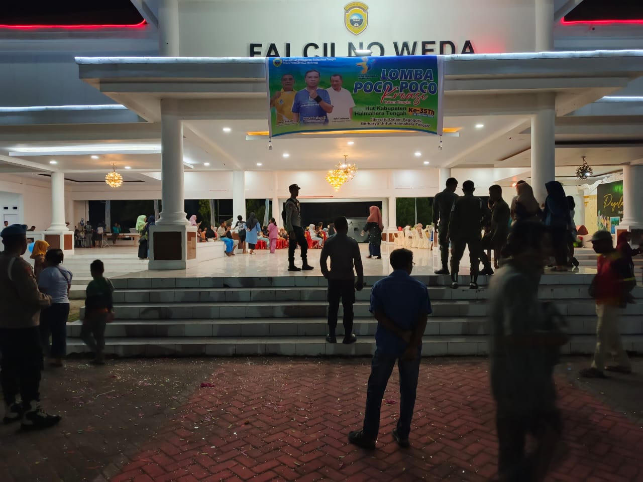 Weda, Halmahera Tengah – Personel Polsek Weda melaksanakan pengamanan dalam kegiatan Malam Kesenian yang digelar di Pendopo Falcino Weda, Senin malam tanggal 20 oktober 2025 . Kegiatan ini merupakan bagian dari rangkaian perayaan Hari Ulang Tahun (HUT) Kabupaten Halmahera Tengah ke-35.