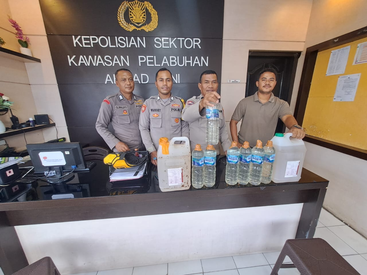 Total keseluruhan minuman beralkohol ilegal yang diamankan yakni 9 (sembilan) kemasan jenis Cap Tikus dari dua kapal berbeda. Dan seluruh barang bukti telah dibawa dan diamankan di Polsek Kawasan Pelabuhan Ahmad Yani untuk proses lebih lanjut.